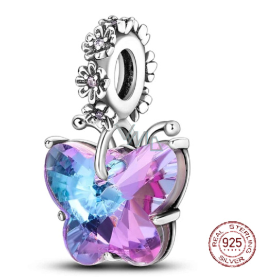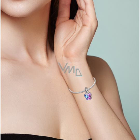 Charm Sterlingové stříbro 925 Kouzelný motýl ze skla Murano, přívěsek na náramek symbol