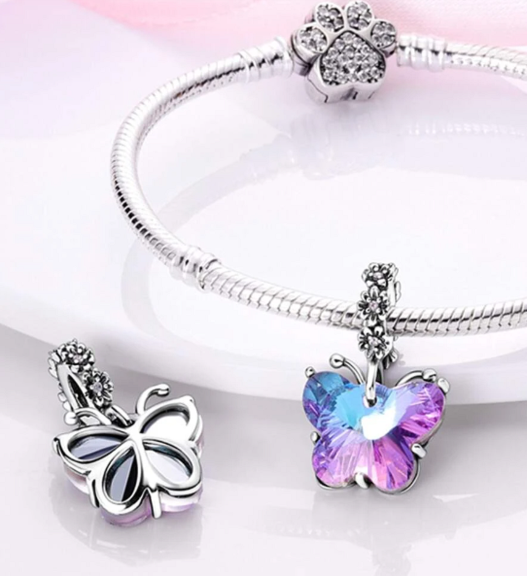 Charm Sterlingové stříbro 925 Kouzelný motýl ze skla Murano, přívěsek na náramek symbol