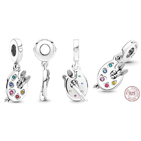 Charm Sterlingové stříbro 925 Malířská paleta, přívěsek na náramek zájmy