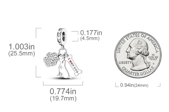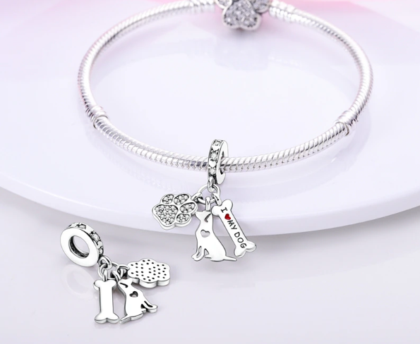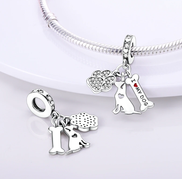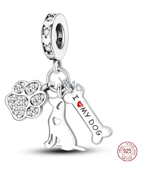 Charm Sterlingové stříbro 925 Miluji svého psa, 3v1 přívěsek na náramek mazlíček