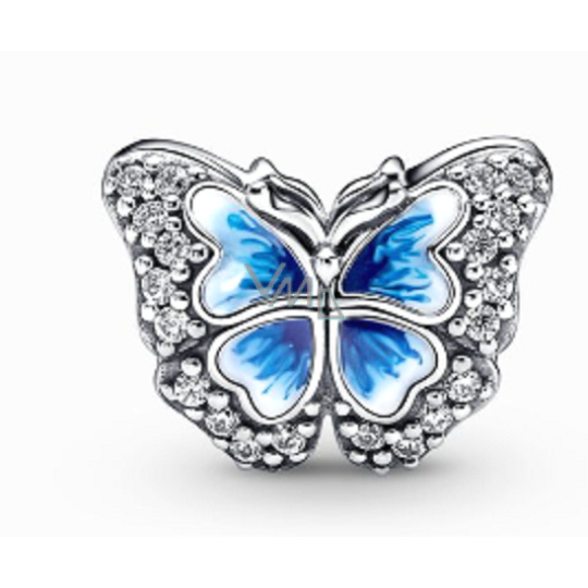 Charm Sterlingové stříbro 925 Modrý třpytivý motýl, korálek na náramek zvíře