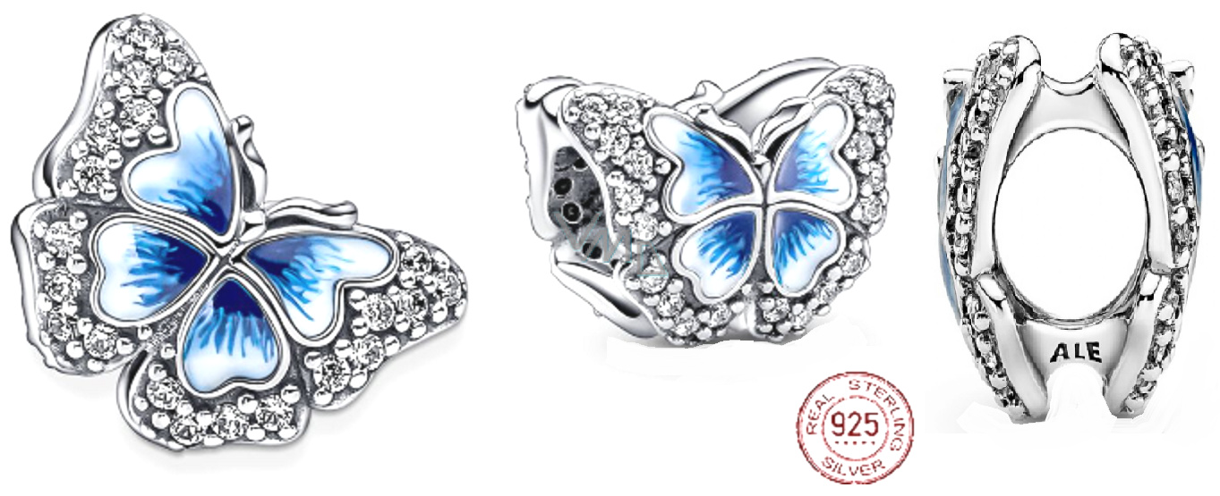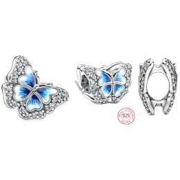 Charm Sterlingové stříbro 925 Modrý třpytivý motýl, korálek na náramek zvíře