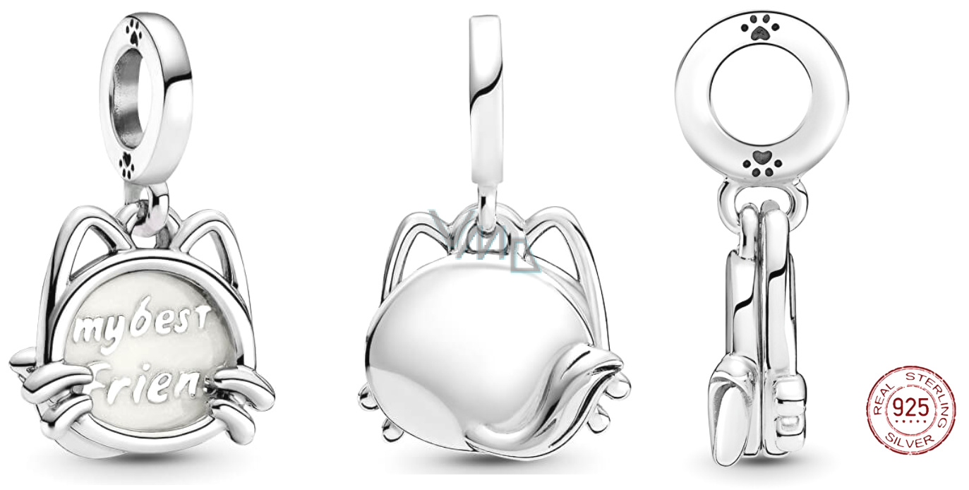 Charm Sterlingové stříbro 925 Moje kočička - můj nejlepší přítel, 2v1 přívěsek na náramek mazlíček