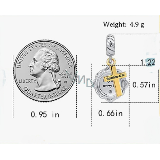 Charm Sterlingové stříbro 925 Náboženská kouzla Isah 41:10, 2v1 přívěsek na náramek