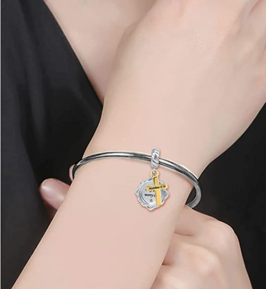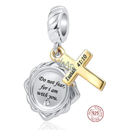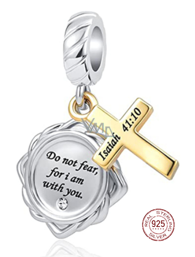 Charm Sterlingové stříbro 925 Náboženská kouzla Isah 41:10, 2v1 přívěsek na náramek