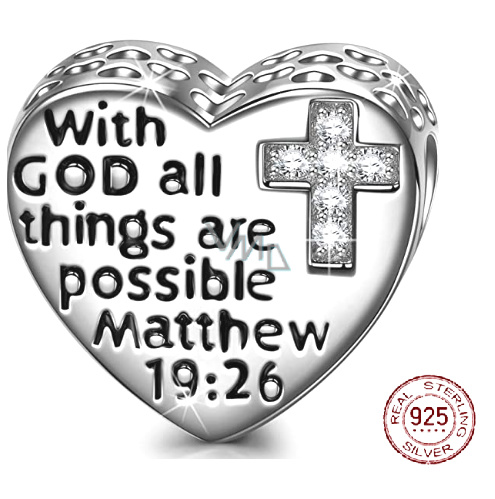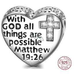 Charm Sterlingové stříbro 925 Náboženská kouzla Matouš 19.26 s kubickým zirkonovým křížem, korálek na náramek