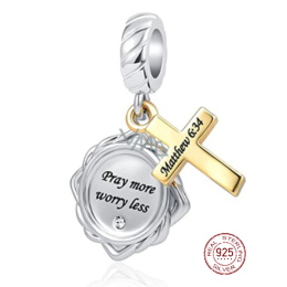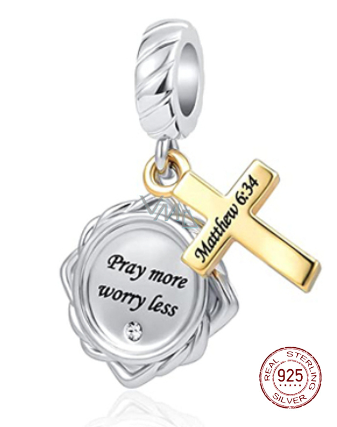 Charm Sterlingové stříbro 925 Náboženská kouzla Matouš 6:34, 2v1 přívěsek na náramek