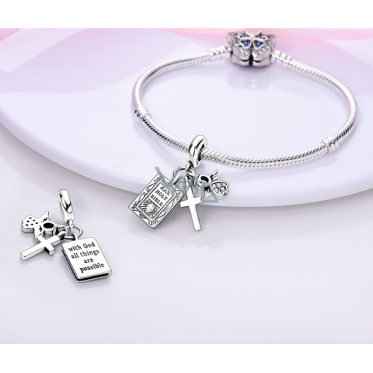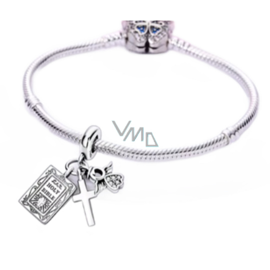 Charm Sterlingové stříbro 925 Náboženská kouzla, První přijímání, křest - Bible s bohem jsou všechny věci možné, 3v1 přívěsek na náramek