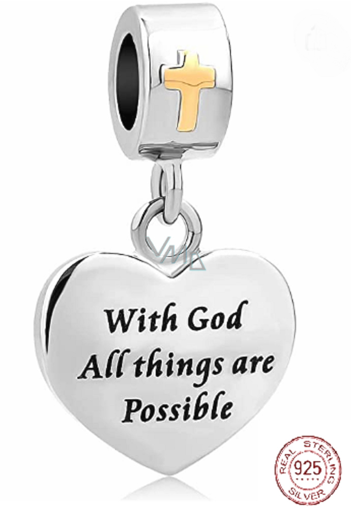 Charm Sterlingové stříbro 925 Náboženská kouzla s Bohem je možné všechno srdce, přívěsek na náramek