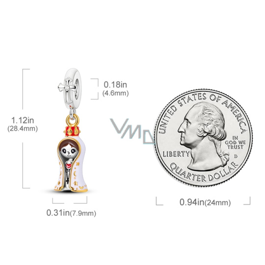 Visací přívěsek s Pannou Marií, navržený s hladkým bílým, červeným a zlatým smaltem. Na prstenu přívěsku je kříž zdobený bílým třpytivým Zirkonem.