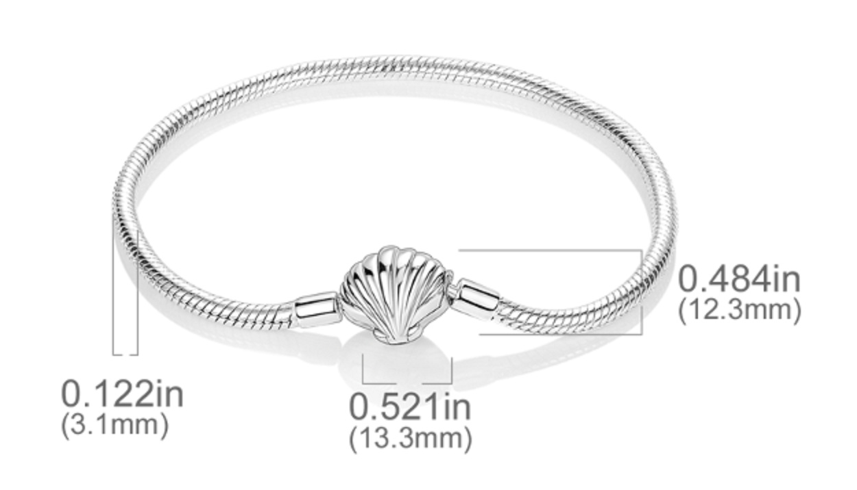 Sterlingové stříbro Náramek Mušle hadí řetízek 18 cm