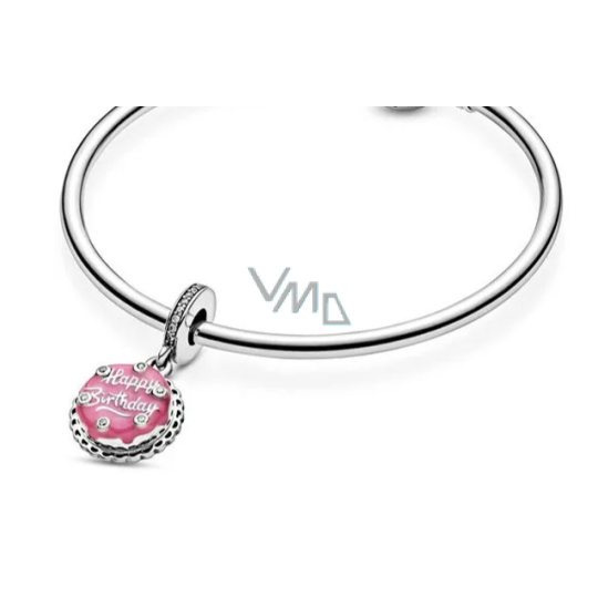 Charm Sterlingové stříbro 925 Narozeninový dort růžový, přívěsek na náramek narozeniny