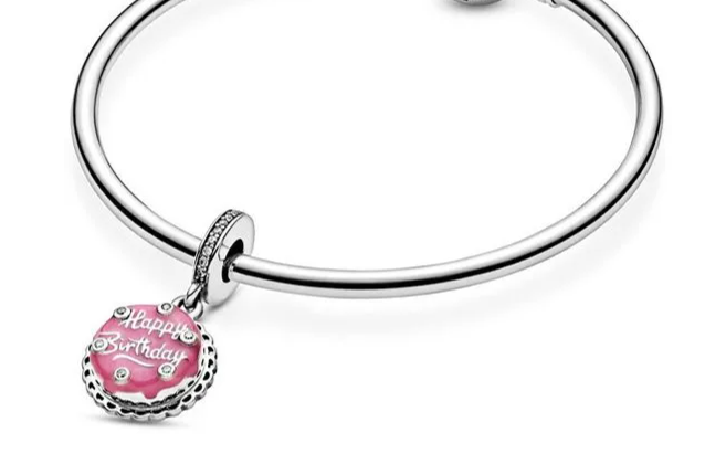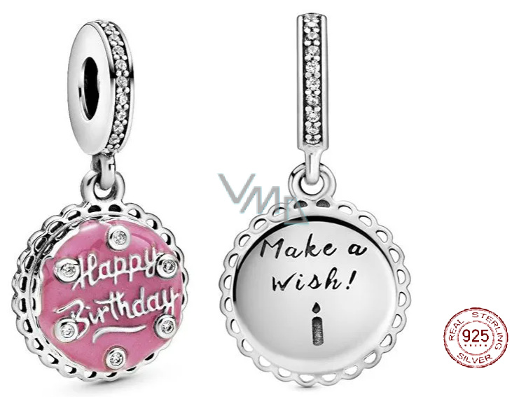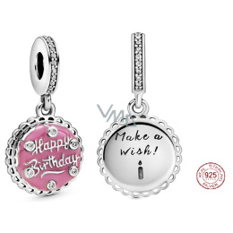 Charm Sterlingové stříbro 925 Narozeninový dort růžový, přívěsek na náramek narozeniny