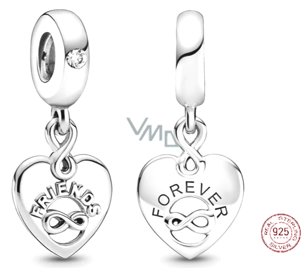 Charm Sterlingové stříbro 925 Navždy přátelé, přívěsek na náramek nekonečno, přátelství