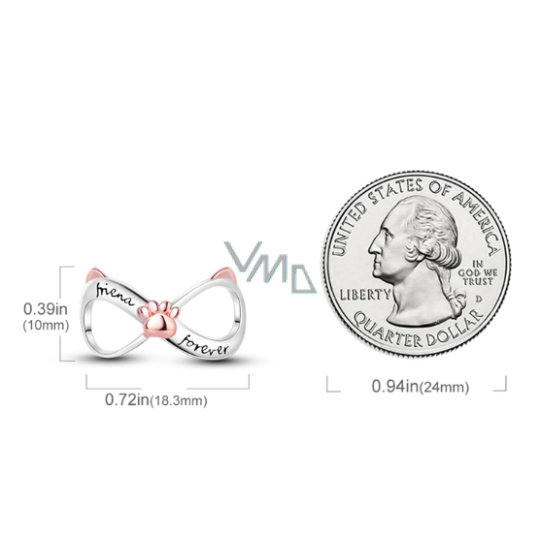Charm Sterlingové stříbro 925 Nekonečno s tlapkou navždy, přívěsek na náramek mazlíček