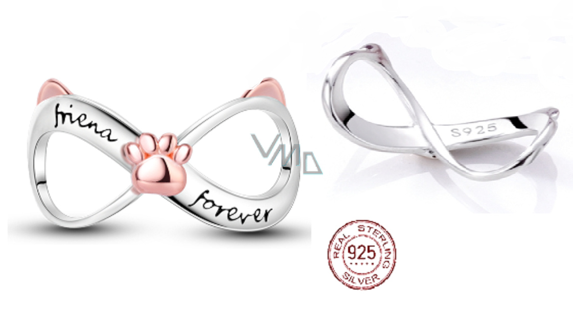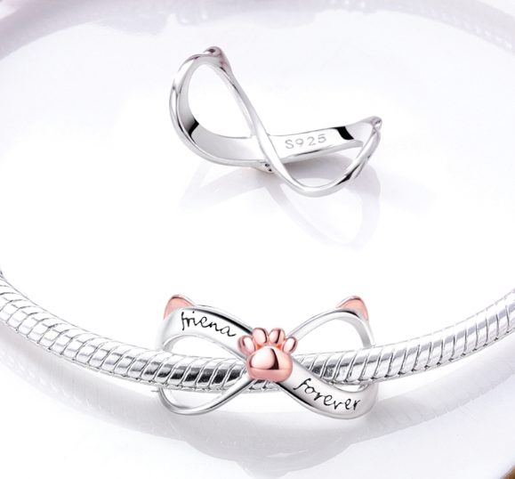 Charm Sterlingové stříbro 925 Nekonečno s tlapkou navždy, přívěsek na náramek mazlíček