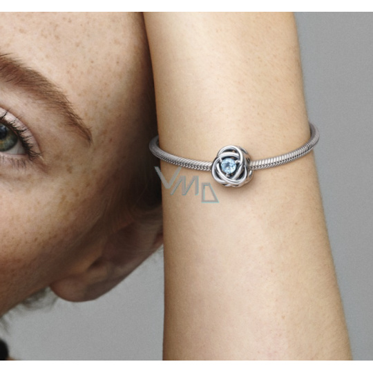 Charm Sterlingové stříbro 925 Nekonečný kruh věčnosti březen, znamení zvěrokruhu, vodově modrý korálek na náramek