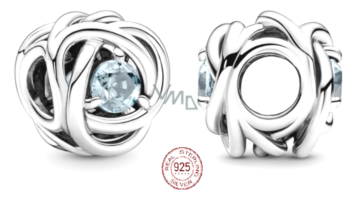 Charm Sterlingové stříbro 925 Nekonečný kruh věčnosti březen, znamení zvěrokruhu, vodově modrý korálek na náramek