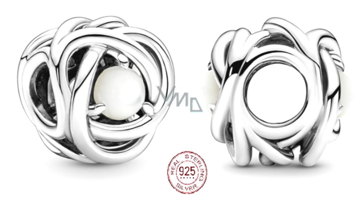 Charm Sterlingové stříbro 925 Nekonečný kruh věčnosti červen, znamení zvěrokruhu, bílý perleťový korálek na náramek