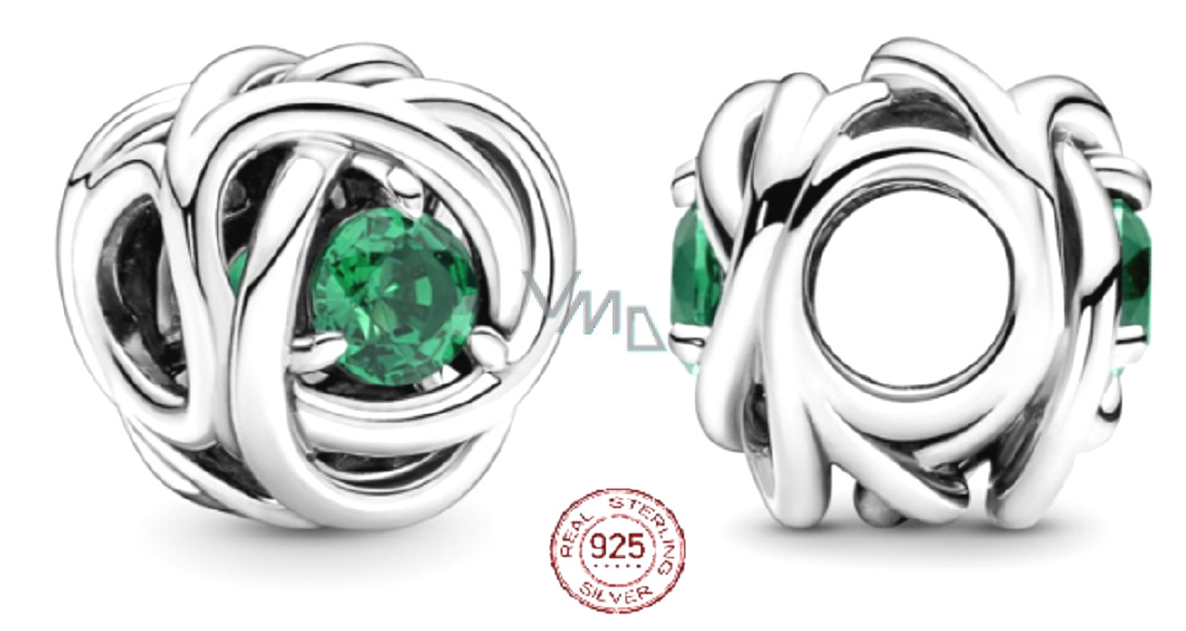 Charm Sterlingové stříbro 925 Nekonečný kruh věčnosti květen, znamení zvěrokruhu, královsky zelený korálek na náramek