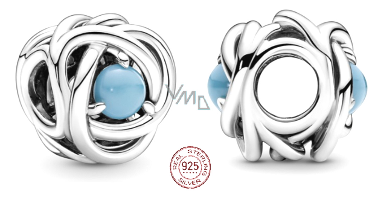 Charm Sterlingové stříbro 925 Nekonečný kruh věčnosti prosinec, znamení zvěrokruhu, tyrkysový korálek na náramek