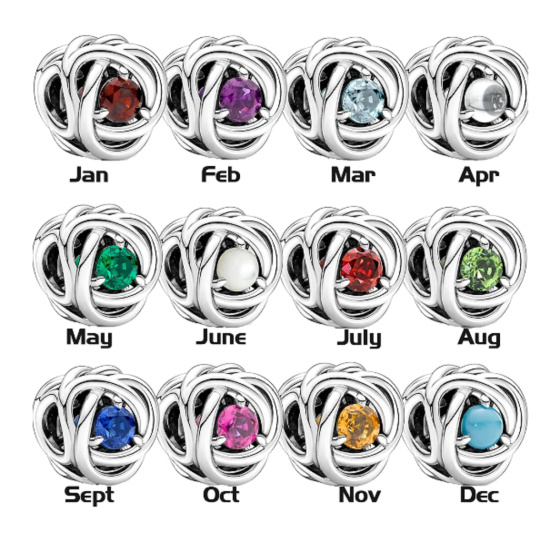 Charm Sterlingové stříbro 925 Nekonečný kruh věčnosti říjen růžový, znamení zvěrokruhu, korálek na náramek