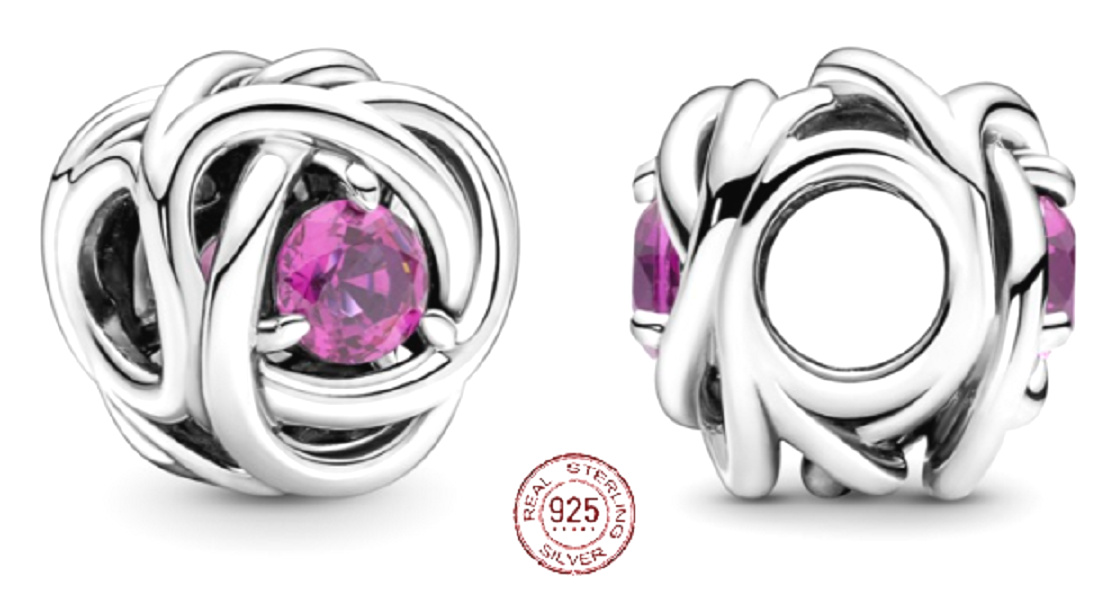 Charm Sterlingové stříbro 925 Nekonečný kruh věčnosti říjen růžový, znamení zvěrokruhu, korálek na náramek