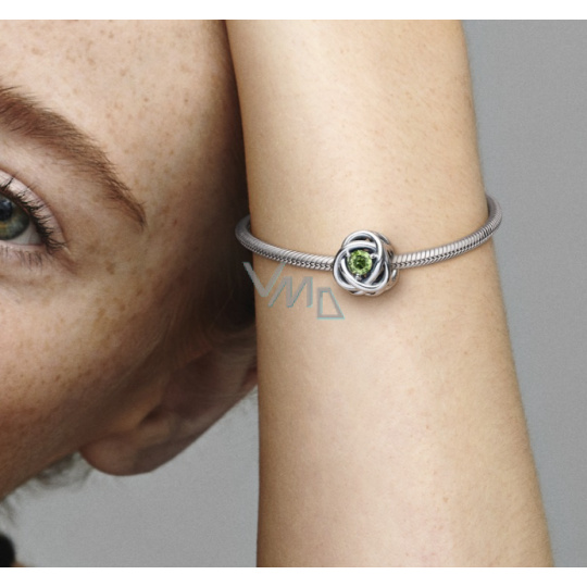 Charm Sterlingové stříbro 925 Nekonečný kruh věčnosti srpen, znamení zvěrokruhu, jasně zelený znamení zvěrokruhu korálek na náramek