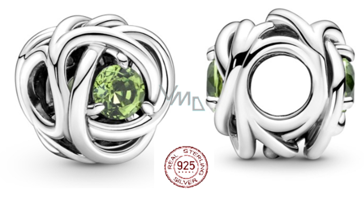 Charm Sterlingové stříbro 925 Nekonečný kruh věčnosti srpen, znamení zvěrokruhu, jasně zelený znamení zvěrokruhu korálek na náramek