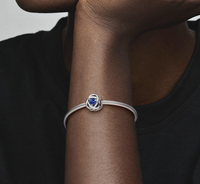 Stříbrný korálek s motivem věčnosti. Dodejte svým náramkům a přívěskům šmrnc pomocí tohoto věčného kruhu. Tento speciální kousek je vyroben ve tvaru nekonečného copu a ve svém středu je osazen modrým krystalem. Symbolizující věčnost, přidejte toto jiskřivé kouzlo do svého stylu, aby vaše každodenní šperky získaly jasnou aktualizaci.