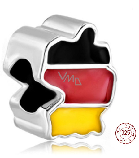 Charm Sterlingové stříbro 925 Německá vlajka - mapa, korálek na náramek cestování