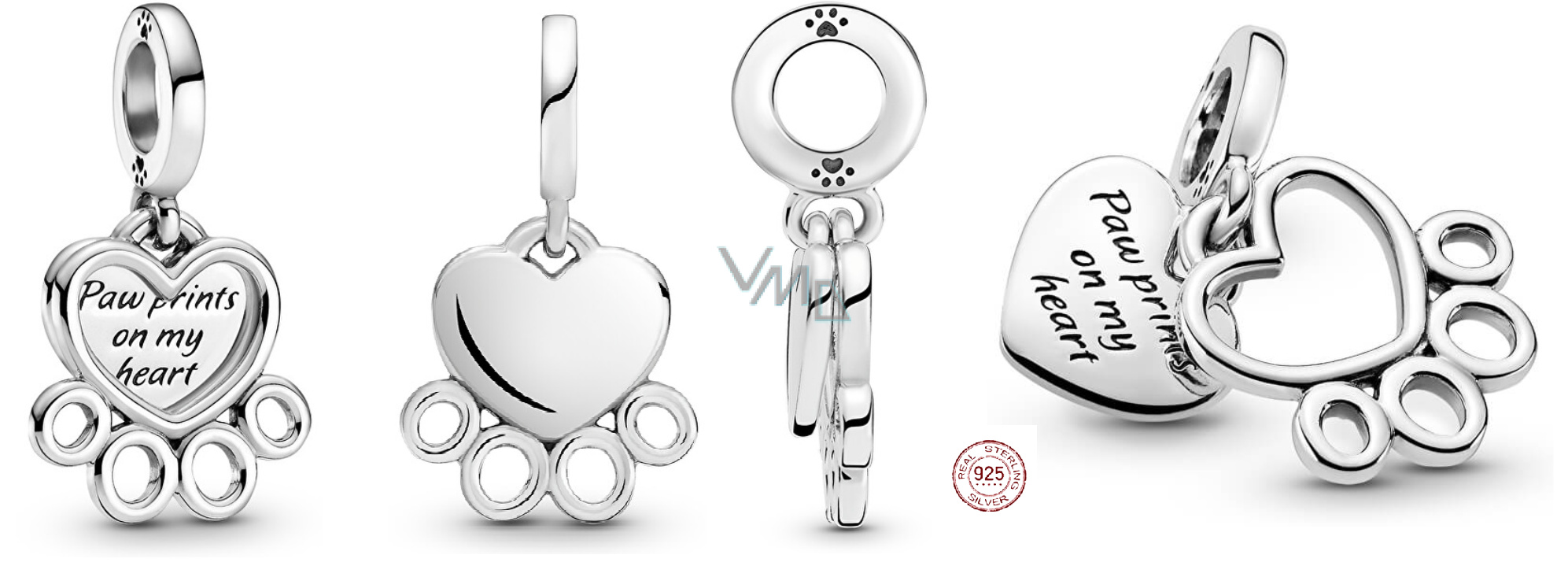 Charm Sterlingové stříbro 925 Otisky tlapek na mém srdci, 2v1 přívěsek srdce na náramek mazlíček
