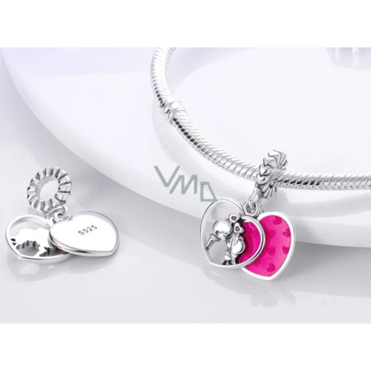 Charm Sterlingové stříbro 925 Pár v lásce, 2v1 přívěsek srdce na náramek láska