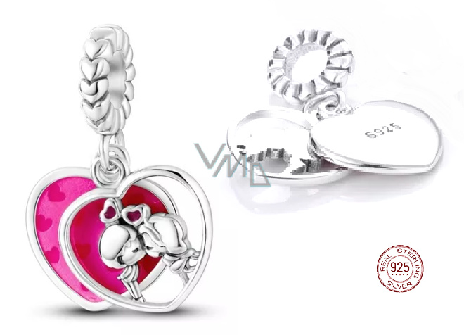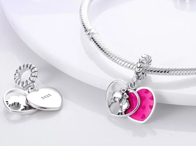 Charm Sterlingové stříbro 925 Pár v lásce, 2v1 přívěsek srdce na náramek láska
