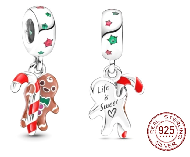Charm Sterlingové stříbro 925 Perníček postavička 2v1, přívěsek na náramek Vánoce