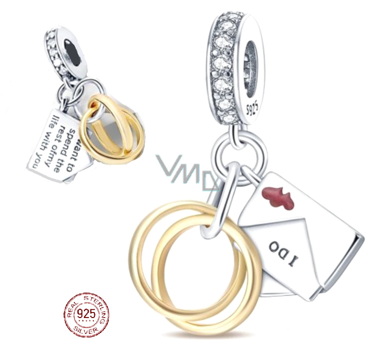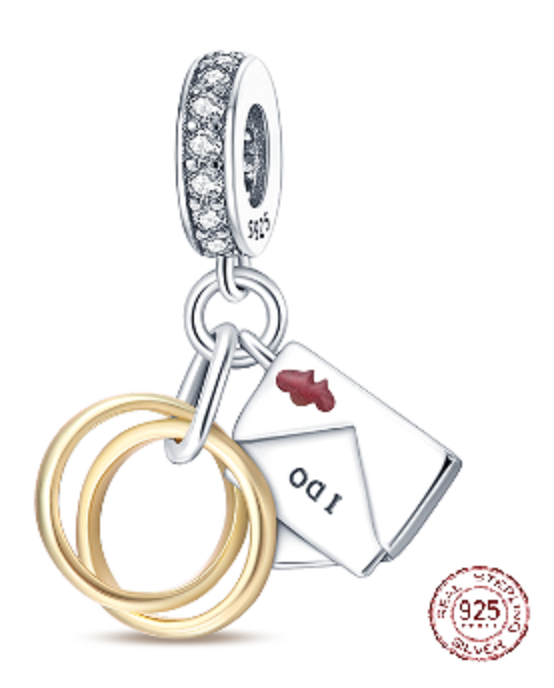 Charm Sterlingové stříbro 925 Prsteny + slib po zbytek života, přívěsek na náramek láska