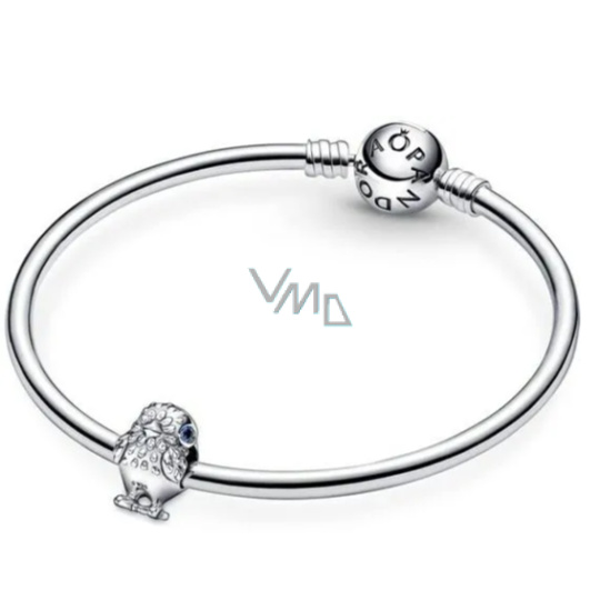 Charm Sterlingové stříbro 925 Kuřátko s modrými zirkony, korálek na náramek zvíře