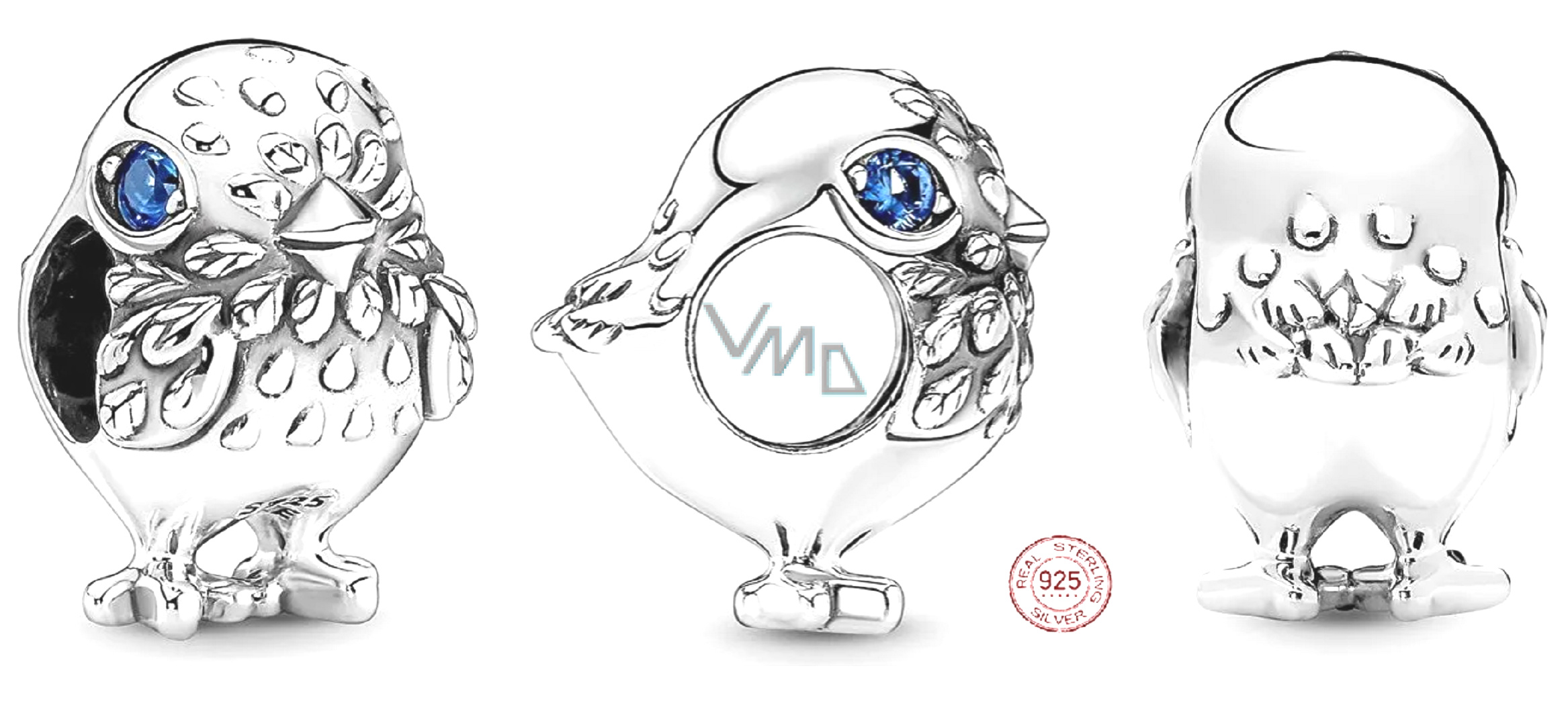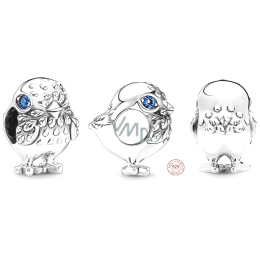 Charm Sterlingové stříbro 925 Kuřátko s modrými zirkony, korálek na náramek zvíře
