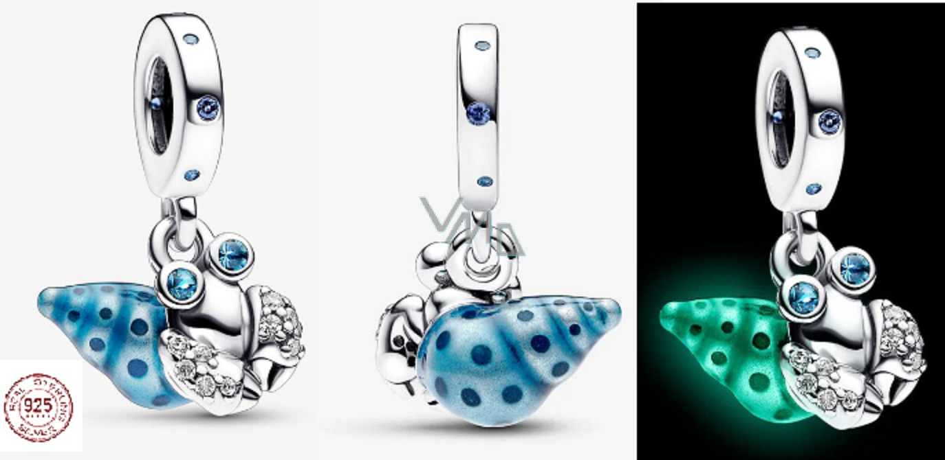 Charm Sterlingové stříbro 925 Krab / rak poustevníček zářící ve tmě, luminozní přívěsek na náramek moře