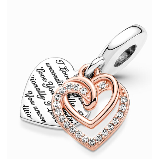 Charm Sterlingové stříbro 925 Rose Bezpodmínečná láska - propletené srdce, 2v1 přívěsek na náramek láska