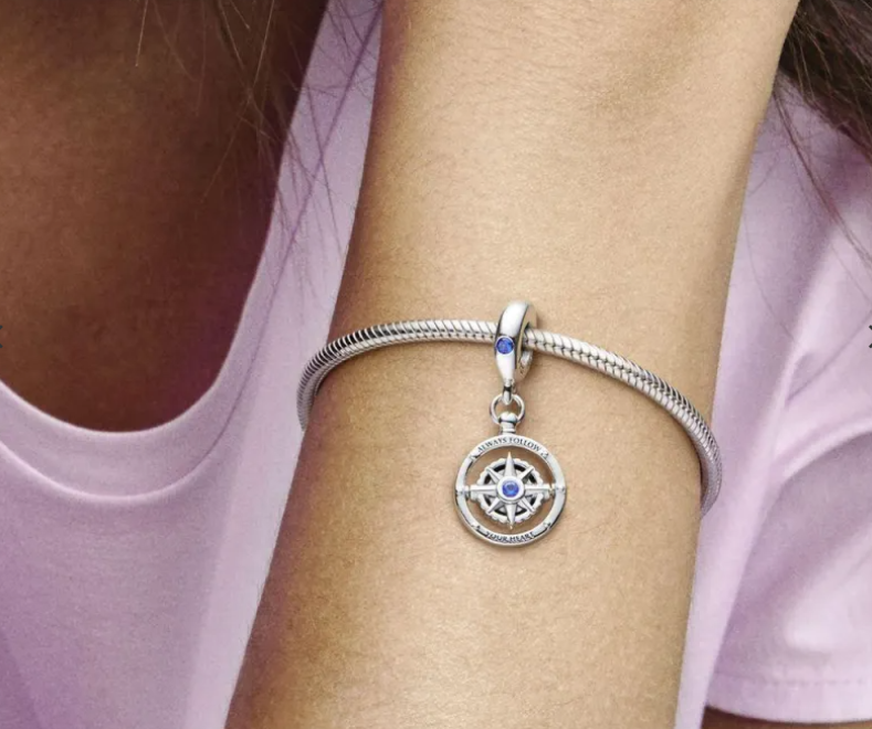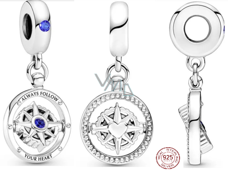 Charm Sterlingové stříbro 925 Rotující kompas se zirkony, přívěsek na náramek cestování