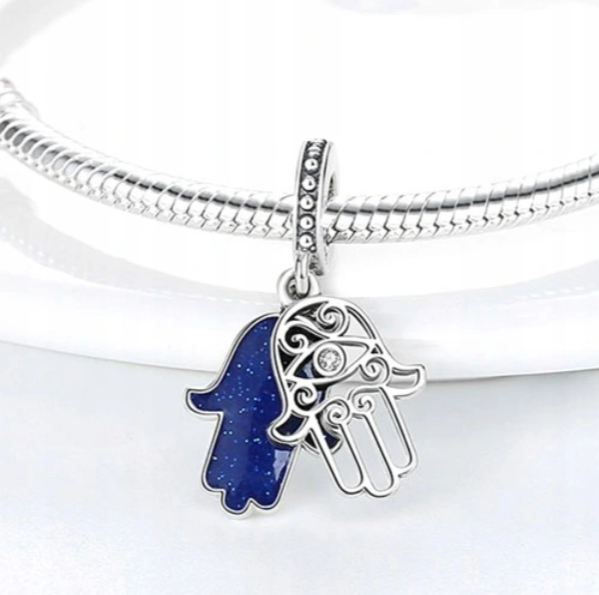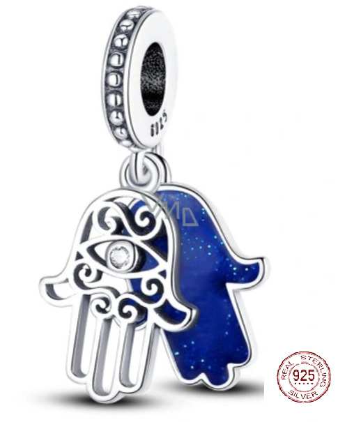 Charm Sterlingové stříbro 925 Ruka Fatimy, Hamsa 2v1, přívěsek na náramek symbol