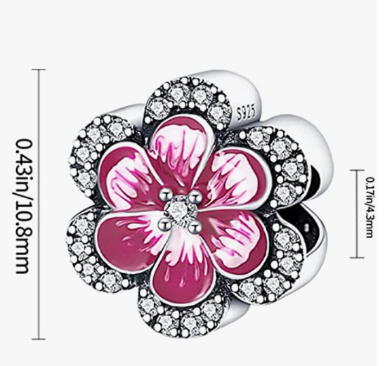 Charm Sterlingové stříbro 925 Růžová květina, maceška, korálek na náramek květina