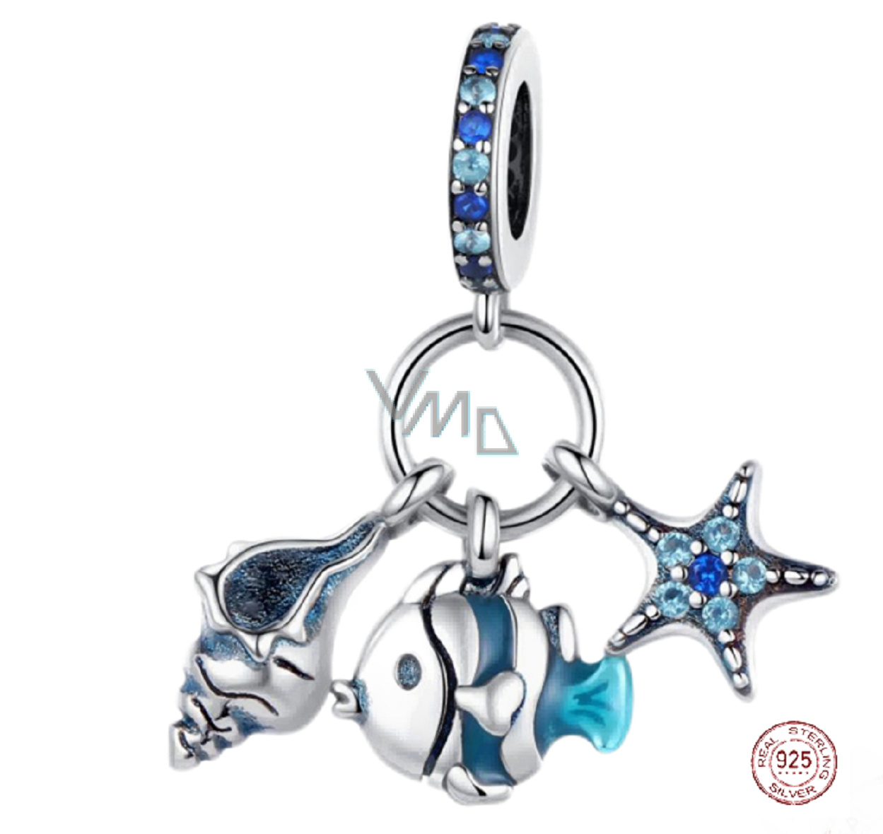 Charm Sterlingové stříbro 925 Ryba, mušle, hvězdice 3v1, přívěsek na náramek moře