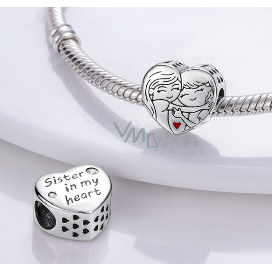 Charm Sterlingové stříbro 925 Sestra v mém srdci, korálek srdce na náramek rodina
