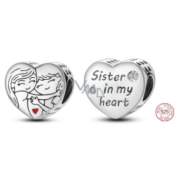 Charm Sterlingové stříbro 925 Sestra v mém srdci, korálek srdce na náramek rodina