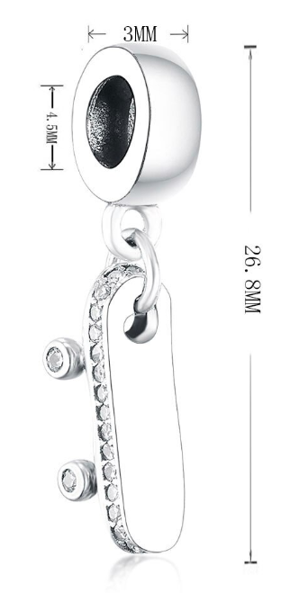 Charm Sterlingové stříbro 925 Skateboard, přívěšek na náramek sport