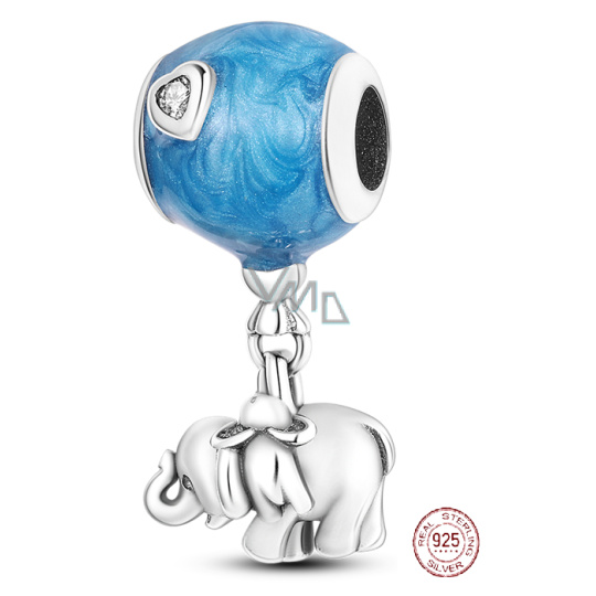 Charm Sterlingové stříbro 925 Slůně s modrým balonkem, přívěsek na náramek rodina