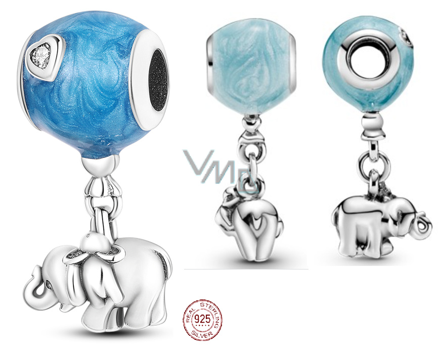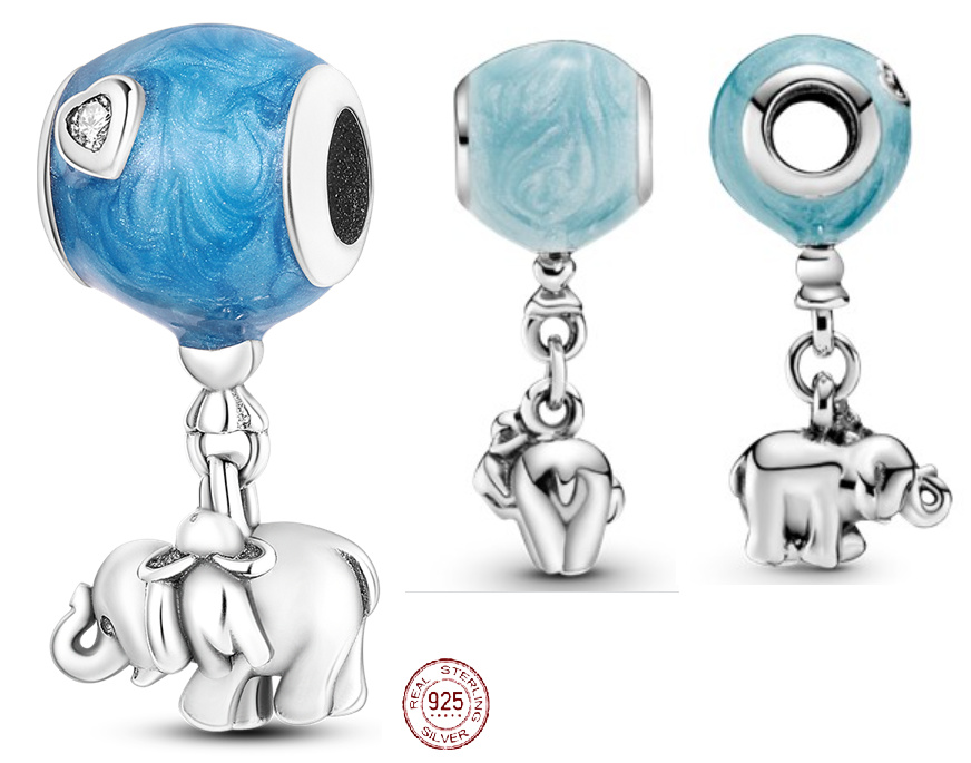 Charm Sterlingové stříbro 925 Slůně s modrým balonkem, přívěsek na náramek rodina