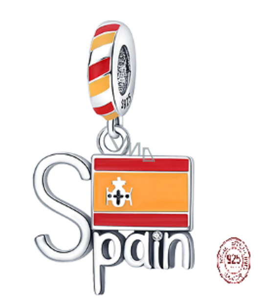Charm Sterlingové stříbro 925 Španělsko vlajka, přívěsek na náramek cestování
